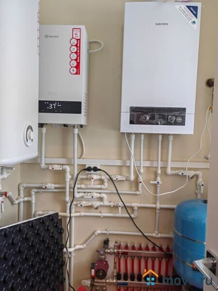 Все коммуникации: газ, электричество 15 кВт, вода-скважина , канализация. Отопление — газовый котел, теплые полы во всех помещениях. Установлена система очистки воды.