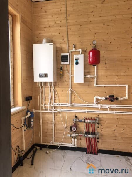 Отопление – газовый котел; 1 этаж теплый пол; 2 этаж батареи.