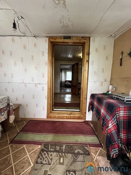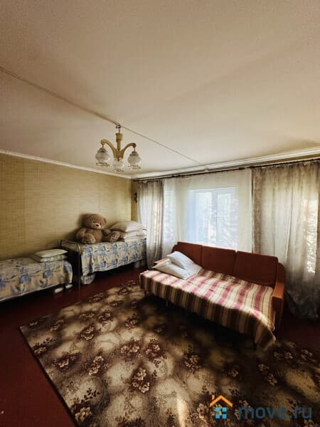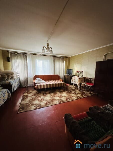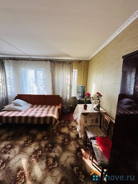В доме кухня и одна большая комната , с тремя пластиковыми окнами.