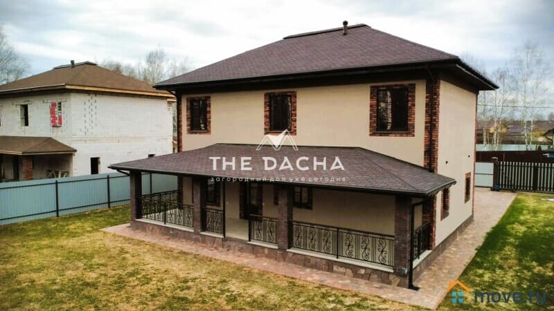 Характеристики дома: Площадь дома: 300,7 м2, фундамент: монолитная армированная плита, материал стен: газосиликатный блок + декоративная штукатурка короед + вставки фасадный клинкерный кирпич, окна: качественные стеклопакеты 70профиль ламинированные с внешней стороны в темный цвет, перекрытия монолитные, кровля: мягкая черепица + утепление, установлена водосточная система.