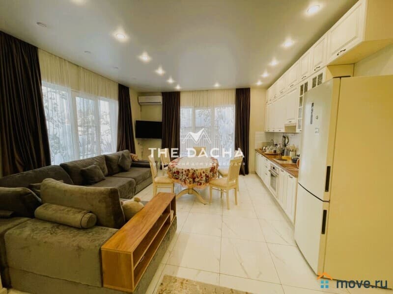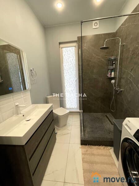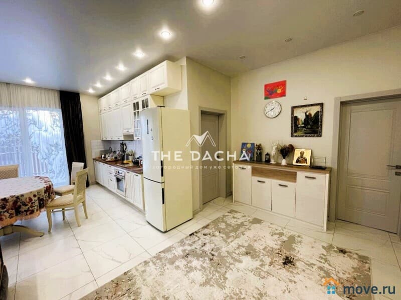 Коммуникации: ГАЗ МАГИСТРАЛЬНЫЙ, электричество 15 кВт, канализация автономный септик, вода скважина, отопление двухконтурный газовый котел, теплые полы по всему периметру дома, установлен кондиционер, интернет оптоволокно.