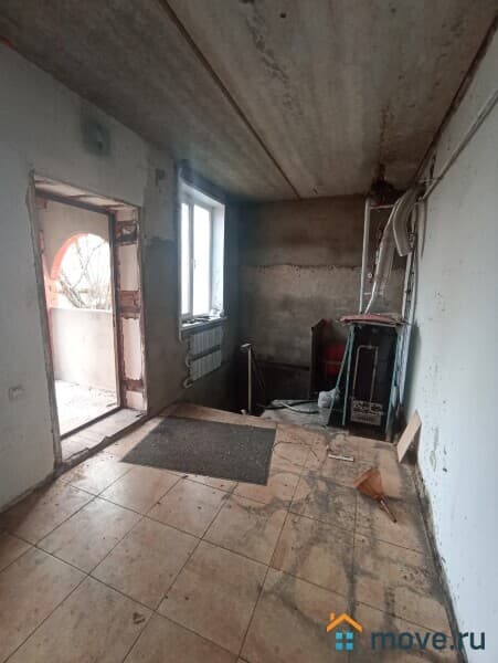 Кирпичный дом без внутренней отделки (местами выложен кафель и покрашены стены).