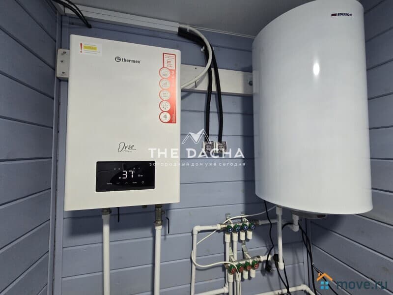 Коммуникации: электричество-15 кВт (3 фазы), отопление-электрический котёл (с удалённым управлением через Wi-Fi) с разводкой радиаторов по всему дому, вода-индивидуальная скважина, канализация- автономный септик. Интернет оптоволокно (Ростелеком) по границе участка. Уличное освещение.