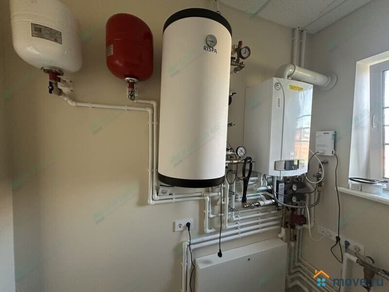 Отопление: газовый котел Baxi (теплые водяные полы по всему первому этажу + радиаторы) / в бане газовый котел, водяные теплые полы