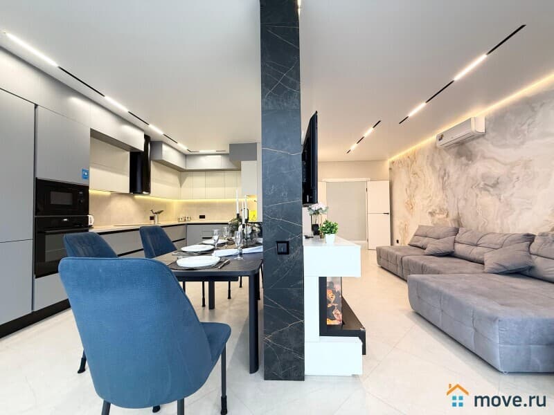 Комфортабельная 2 -ух комнатная квартира с большой кухней-гостиной, панорамными окнами и камином ? в новом доме, с евро ремонтом и стильным дизайном.