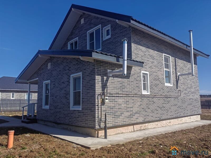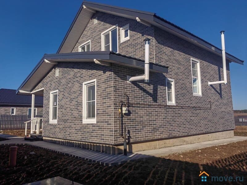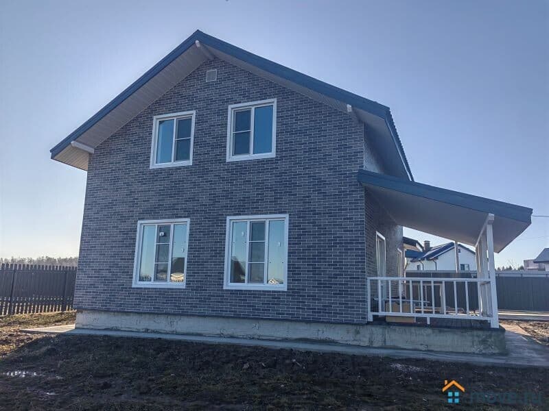 Материал: газосиликатные блоки с системой удержания тепла + энергосберегающие фасады. Окна ПВХ. На первом этаже: прихожая, кухня-гостиная, санузел, бойлерная, гостевая комната (кабинет). Второй этаж: санузел, три комнаты. Санузел в плитке.