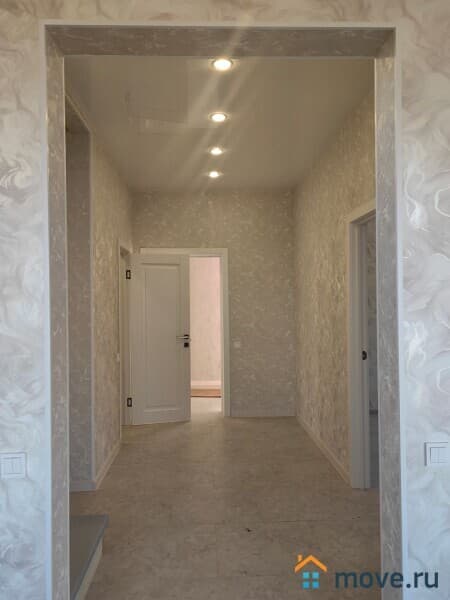В доме выполнен современный ремонт: на полу на первом этаже керамогранит с системой теплый пол, на втором этаже полы ламинат, стены оклеены обоями, натяжные потолки. Установлена сантехника, отопление газовый котел, жидкий теплый пол с подогревом от магистрального газа ( дополнительно радиаторы отопления в спальнях).