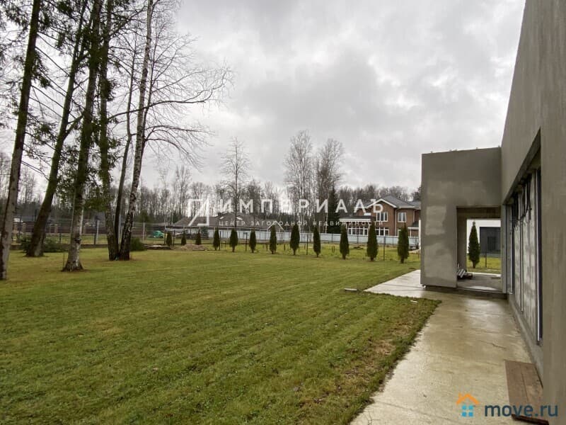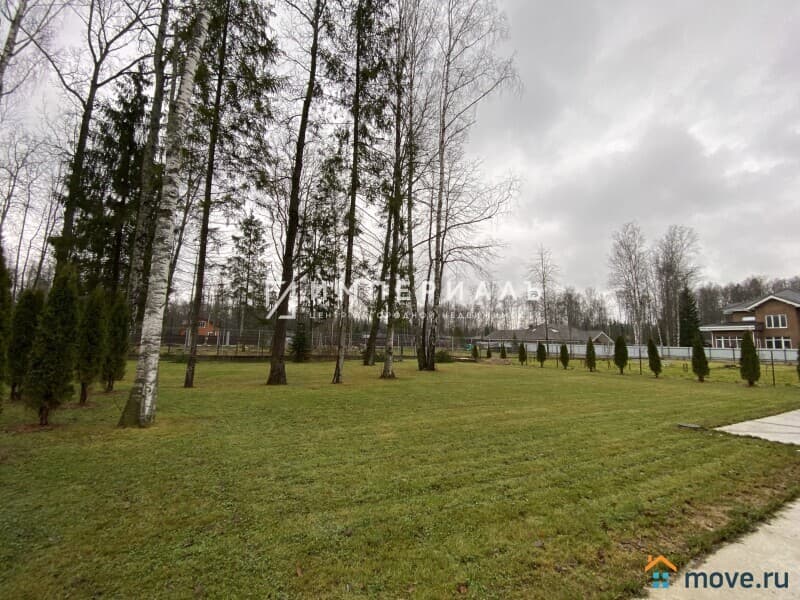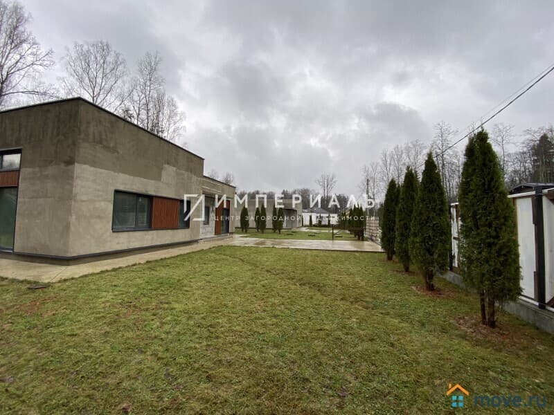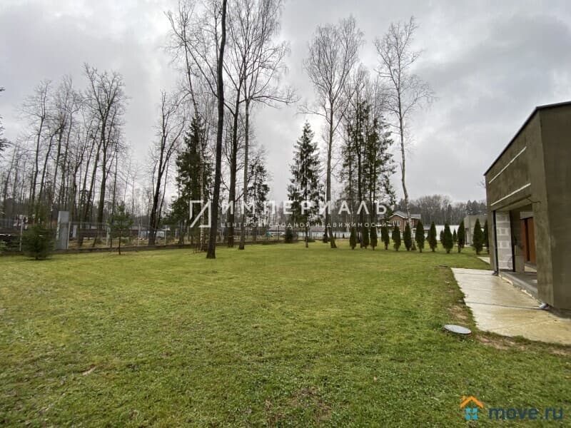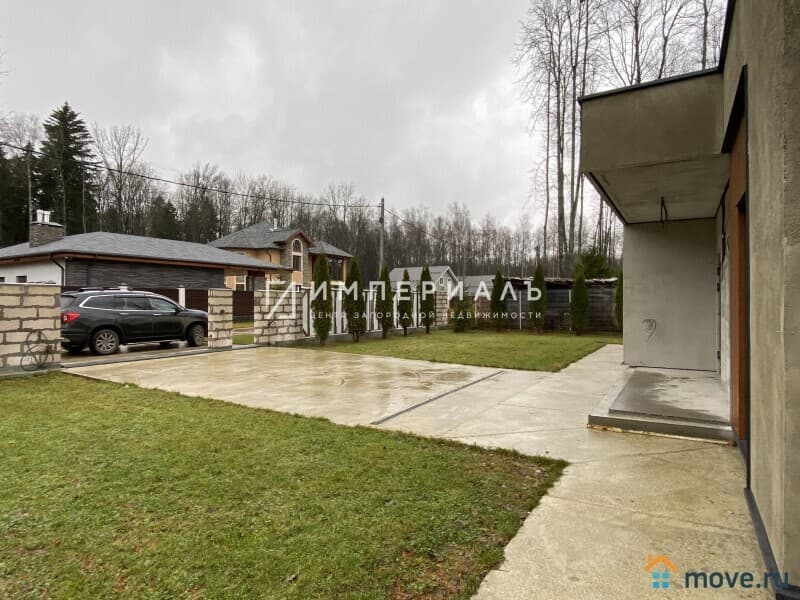 Участок 13,5 соток, ровный, с многолетними лесными деревьями, газоном, парковкой на 4 авто, дорожка вокруг дома (ширина 1,7 метра). Дизайнерский забор в стилистике дома.