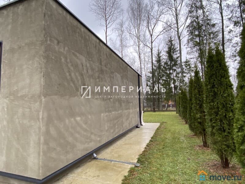 Стены из газобетона D400, 400 мм – толщина блока, фундамент – плита с бетонными сваями, плоская кровля (послойно: монолитный бетон, гидроизол, утепление ЭППС 200 мм, сухая стяжка, ПВХ мембрана 2 мм bauder). Окна с энерго-напылением премиум класса КALEVA softline 70 мм. Вокруг дома устроена утеплённая отмостка на 1,7 метра от дома. Отделка внутри – White Box.