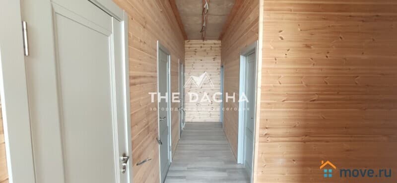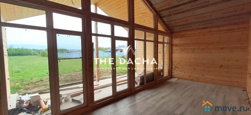 Внутренняя отделка дома: из качественной вагонки штиль, имитация бруса. Полы монолитное армированное перекрытие с тёплым водяным полом (трубы REHAU), установлены напольные радиаторы вдоль панорамных окон. Высота потолков 3.1м. Входная дверь с защитой от промерзания.