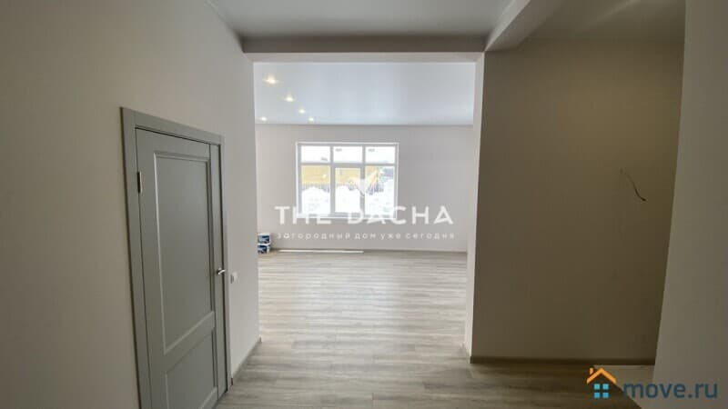 Внутренняя отделка дома под ключ: стены под покраску, пол- плитка/ламинат, потолок натяжной, межкомнатные двери, установлена сантехника.