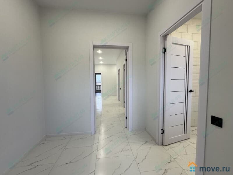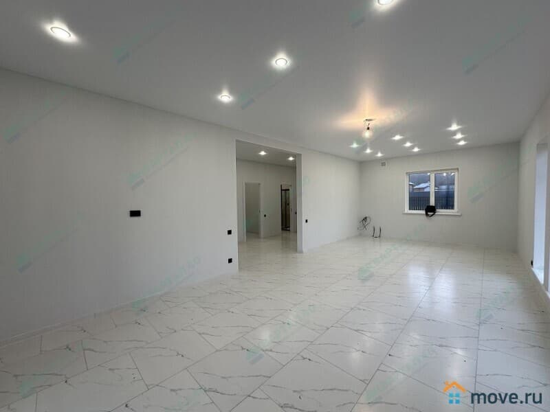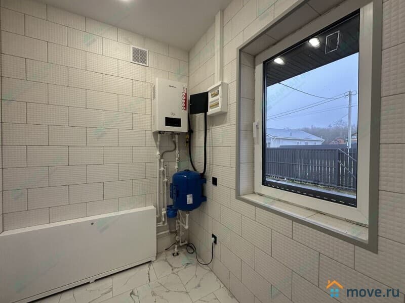 Планировка: крыльцо, прихожая, котельная, холл, гардеробная, кухня - гостиная с выходом на террасу, 2 с/у, 3 комнаты