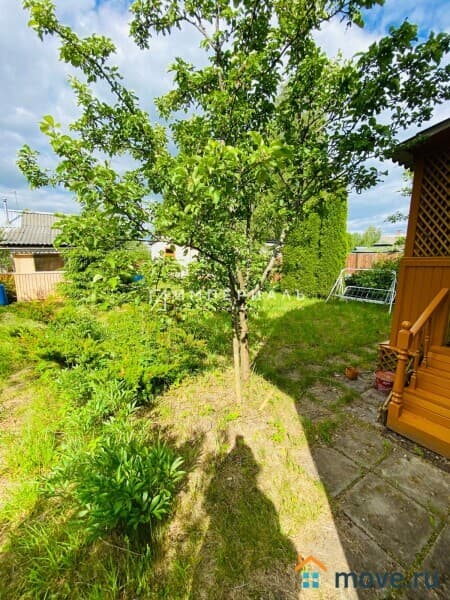 Ровный прямоугольный участок на 5,22 сотки. Земля сельскохозяйственного назначения для садоводства. На участке растут елки, туи, плодовые деревья и кустарники, есть клумбы с цветами. А также качели, домик для гостей с бойлером, водой и чугунной печью. Два хозяйственных блока, в одном из которых: бойлер, душевая комната и постирочная.