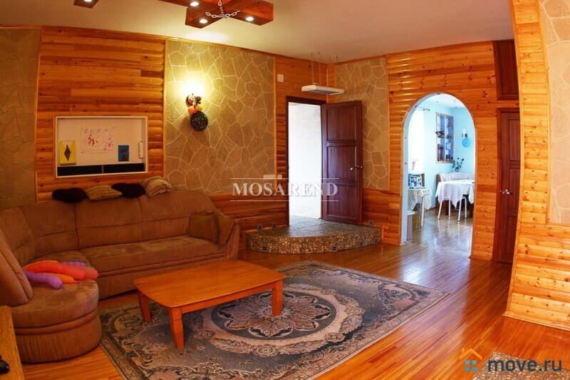 Уютный дом площадью 290 м2 с баней расположен в 109 км от МКАД по Варшавскому шоссе на границе Московской и Калужской областей, в селе Некрасово, Тарусский район.