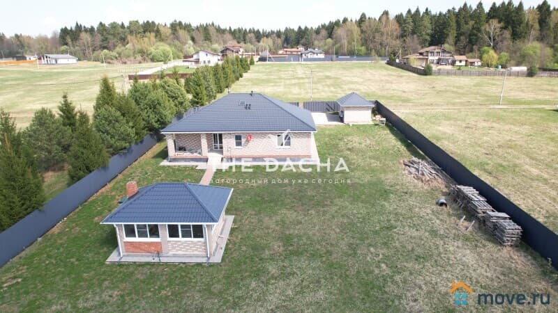 Участок: 20 соток, категория земель-земли населённых пунктов, ровный, правильной формы. Находится на возвышении. Огорожен со всех сторон. Установлены откатные ворота+ дополнительный въезд с распашными воротами. С боковой стороны забора высажены ели и сосны.