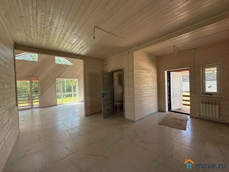 Планировка этажа – тамбур, котельная, холл, 2 с/у, кухня - гостиная с выходом на террасу, 3 комнаты;