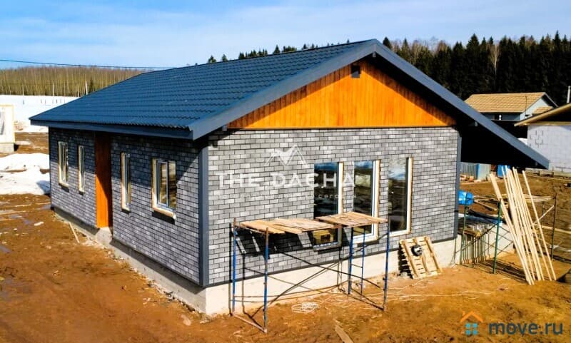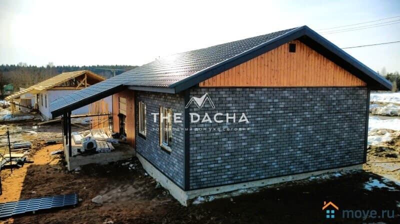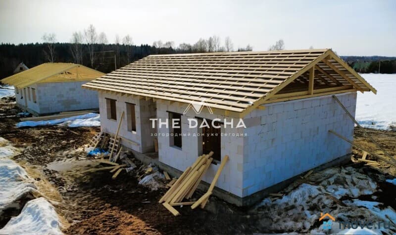 Характеристики дома: Площадь дома 100 м2(плюс терраса 15 м2) фундамент монолитная железобетонная плита, стены газосиликатный блок (250мм) + утепление минеральная вата (50мм) возможна отделка фасада – фибросайдинг / имитация бруса / хауберк, окна- ПВХ двухкамерные стеклопакеты, кровля металлочерепица + утепление, установлена водосточная система.