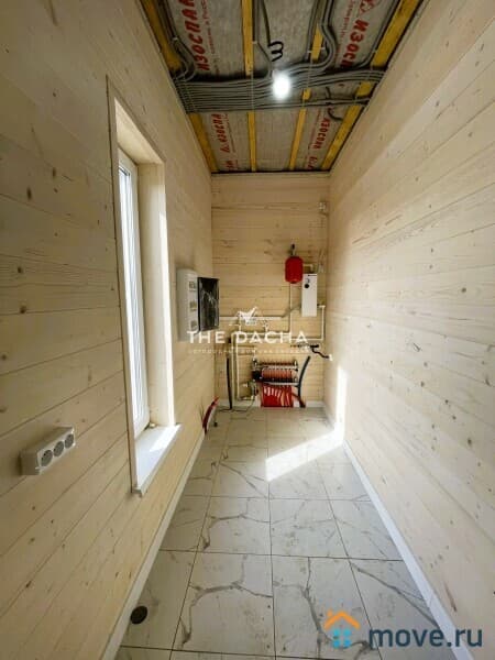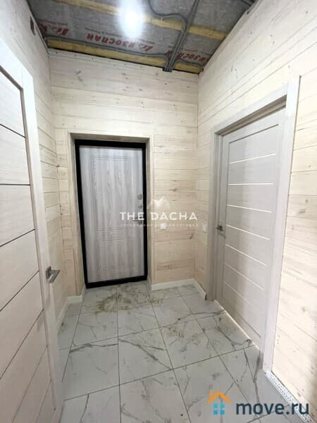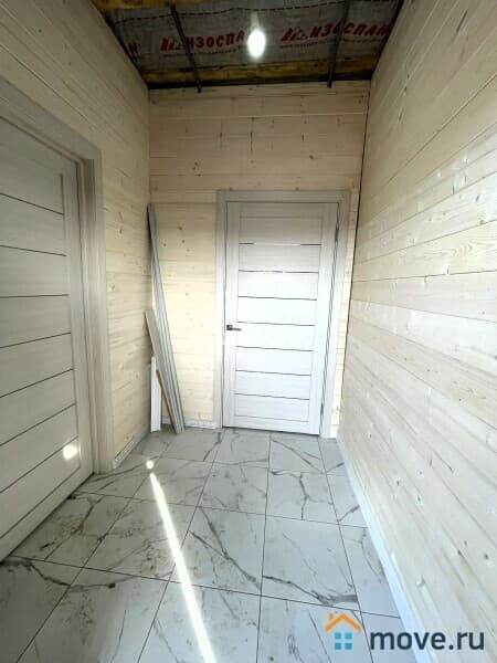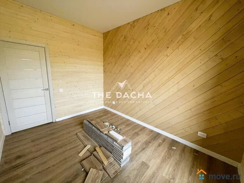 Внутренняя отделка под ключ: полы керамогранит/ламинат, стены имитация бруса (в санузле плитка), потолок натяжной, установка межкомнатных дверей.