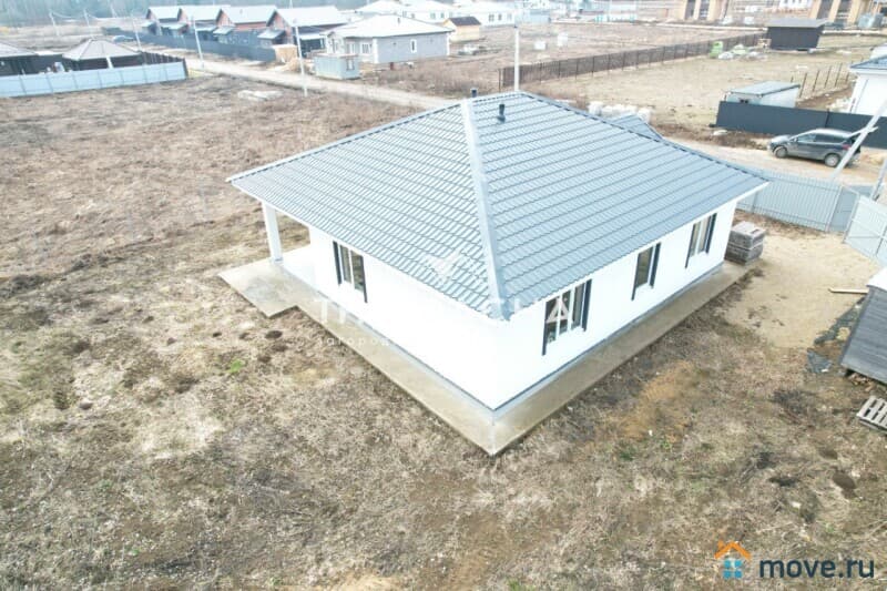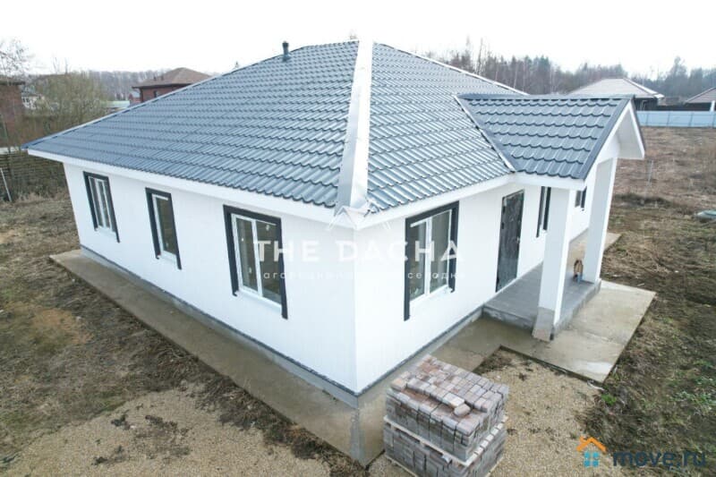 Дом: общей площадью 122.1 м2. Фундамент-монолитная, армированная плита. Наружные стены- газосиликатный блок с утеплением. Отделка наружных стен-штукатурка (Короед). Кровля- металлочерепица с утеплением. Окна-ПВХ (двойные стеклопакеты).