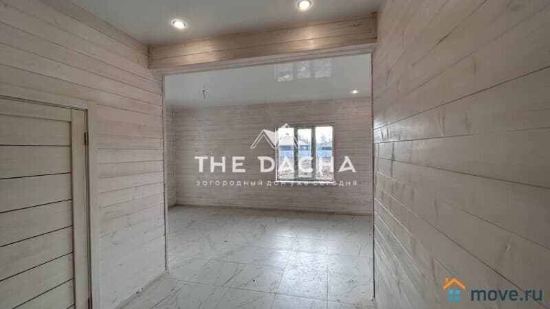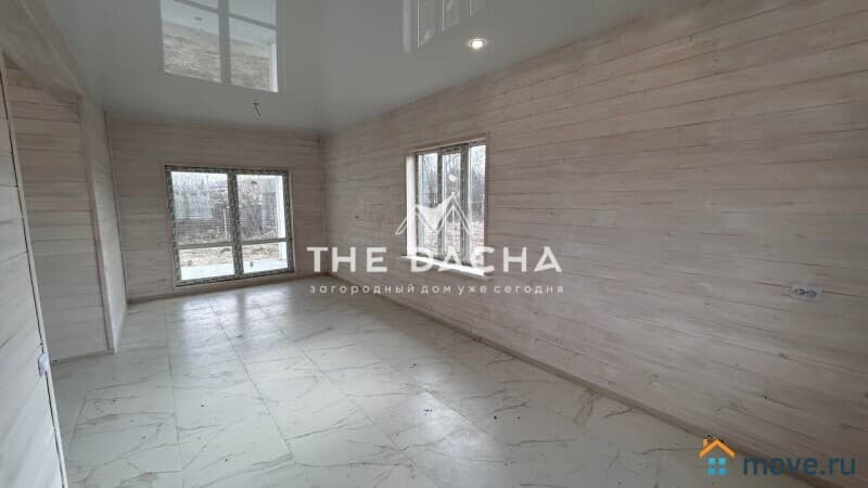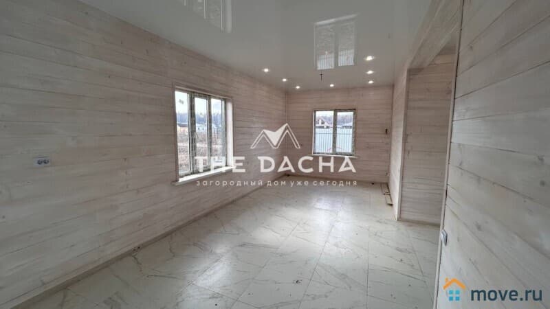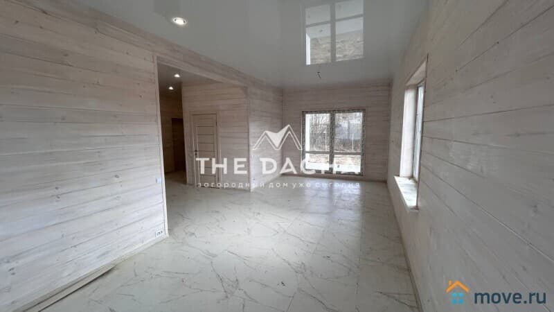 Внутренняя отделка дома под ключ: стены -имитация бруса, полы- керамогранит, ламинат, потолок натяжной, межкомнатные двери, установлена сантехника.