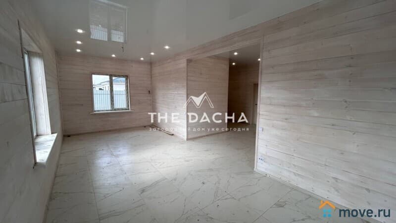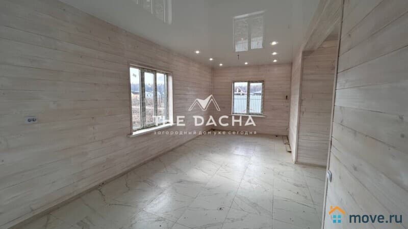 Внутренняя отделка дома под ключ: стены -имитация бруса, полы- керамогранит, ламинат, потолок натяжной, межкомнатные двери, установлена сантехника.