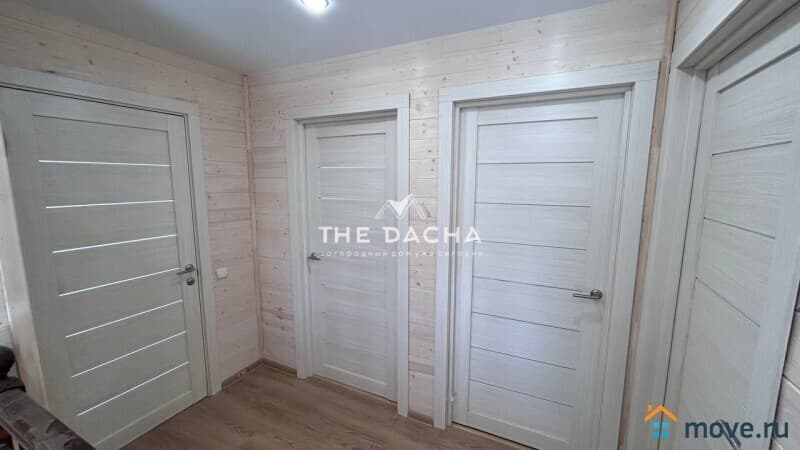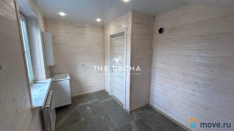 Внутренняя отделка дома под ключ: стены имитация бруса, полы- керамогранит, ламинат, потолок натяжной, межкомнатные двери, установлена сантехника.