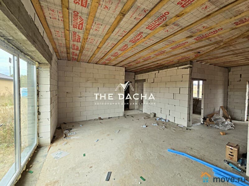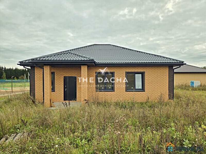 100 кв. м, фундамент-монолитная плита, стены-газосиликатный блок + утепление+ вентилируемый зазор + фасадный кирпич, кровля-металлочерепица+ утепление, окна-ПВХ (ламинированные двойные стеклопакеты). Установлена водосточная система.