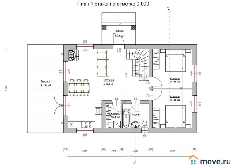 Планировка: на 1 этаже: располагается большая кухня-гостиная с большими панорамными окнами со вторым светом, две спальни, санузел, котельная. 2 этаж: большая комната (20 м кв), санузел, гардероб, балкон с обзором на 1 этаж.