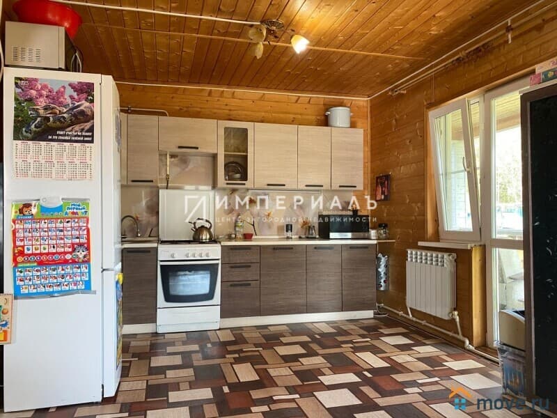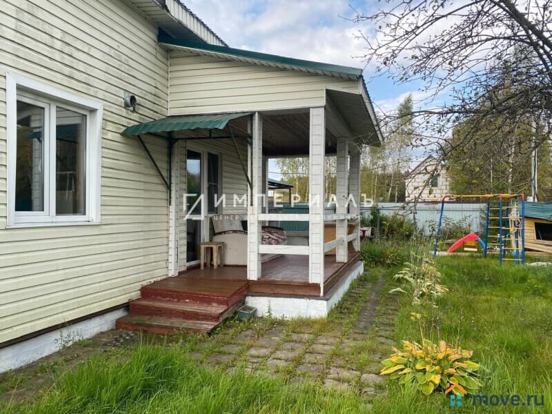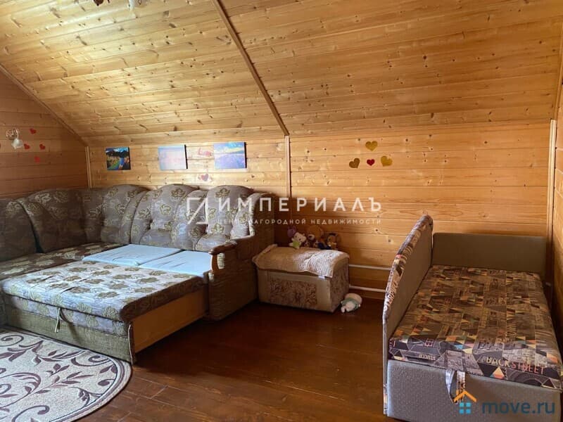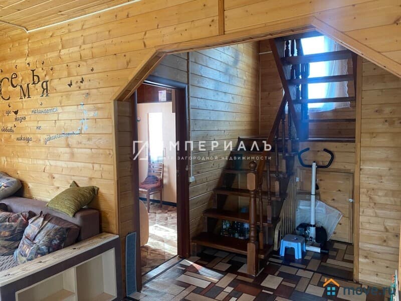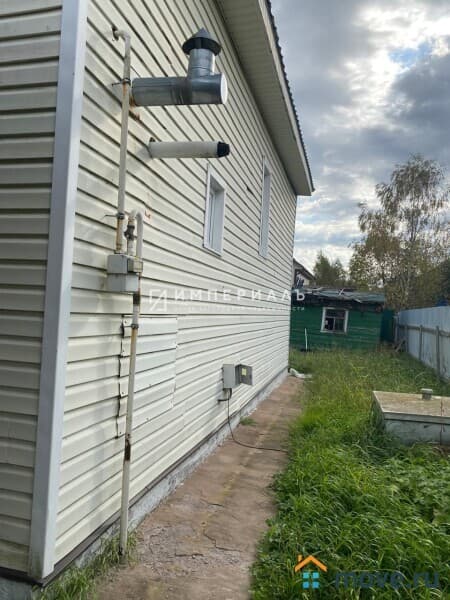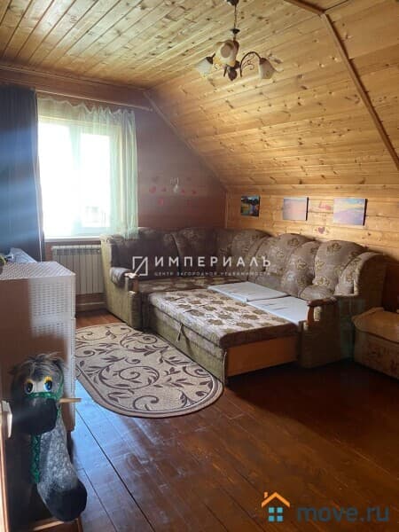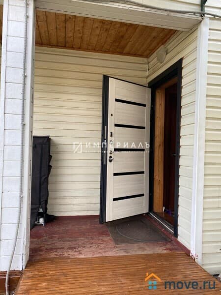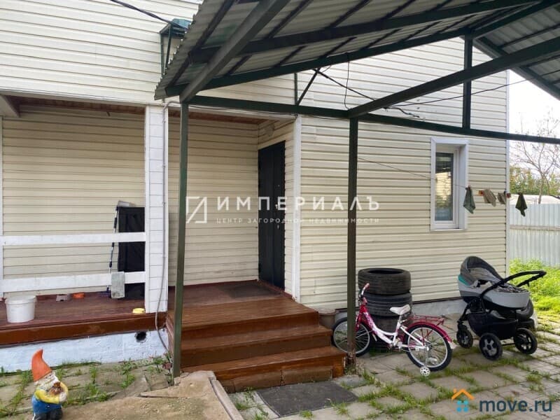 Двухэтажный теплый дом из бруса 2013 года постройки, обшит сайдингом, общая площадь 101 кв.м. Фундамент ленточный, кровля - металлочерепица, полы утепленные, сверху линолеум, остекление - двойные энергосберегающие стеклопакеты. Над крыльцом навес, вокруг дома бетонная отмостка.