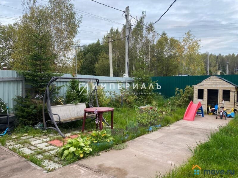 Участок 6 соток (ИЖС). На участке деревянный сарай 10 кв. м, мангальная зона, детская площадка, бетонные дорожки, парковочное место на 2 автомобиля с навесом. На участке растет клубника, малина, смородина, цветы. Участок огорожен профлистом, ворота распашные с калиткой.