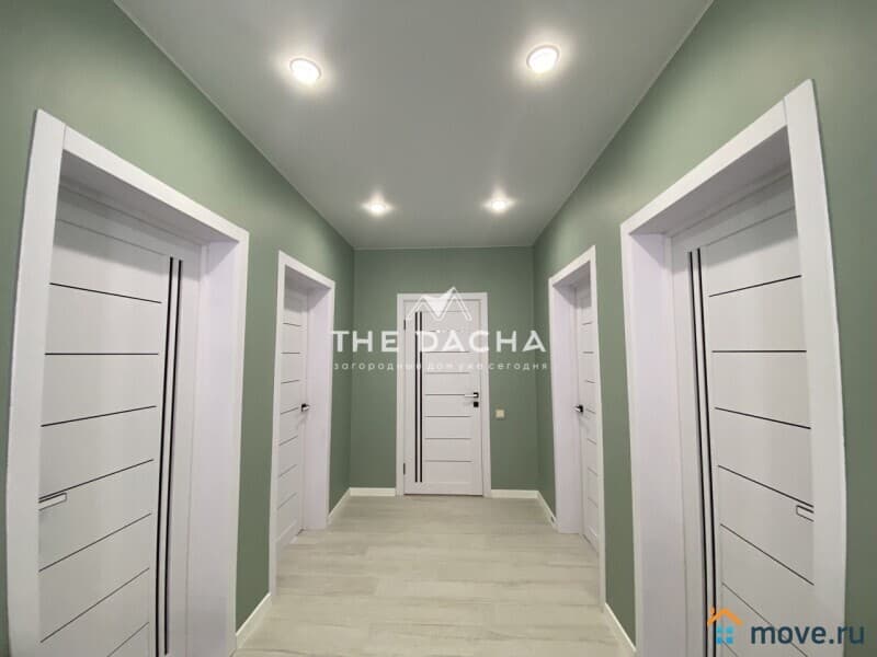 Внутренняя отделка дома под ключ: стены- окрашены/обои, пол- плитка/ламинат, потолок натяжной, межкомнатные двери, установлена сантехника.